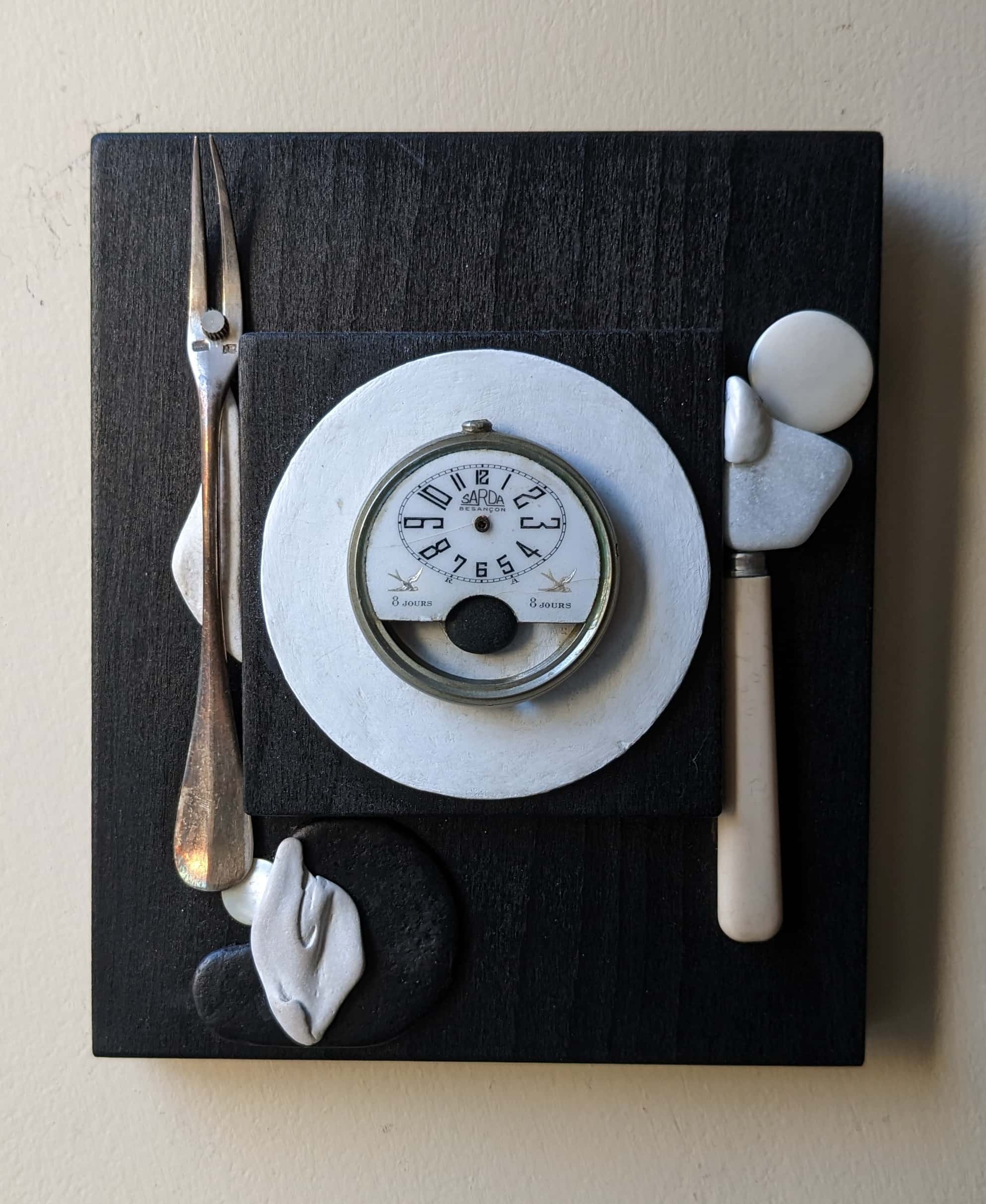 Il n’est absolument pas question de sculpter une forme, ni même de l’aider un peu à être plus proche de son désir. Non, la main n’est là que pour provoquer des rencontres, coller ; la main et la rêverie.